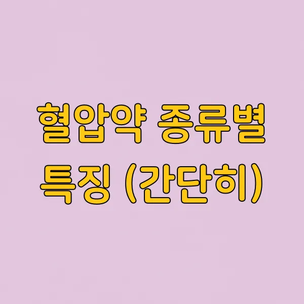 혈압약 종류별 특징 (간단히)