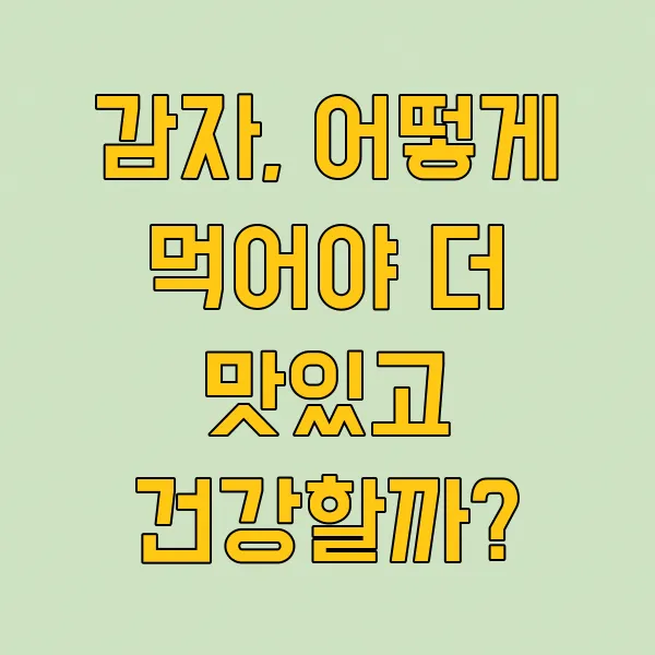 핵심 팁 감자는 껍질째 깨끗이 씻어 찌거나 삶아 드시는 것이 영양 손실이 가장 적고 건강하게 즐기는 방법입니다. 싹이 나거나 녹색 부분이 있는 감자는 피하고, 혈당 관리가 필요한 경우 섭취량 조절에 유의하세요.