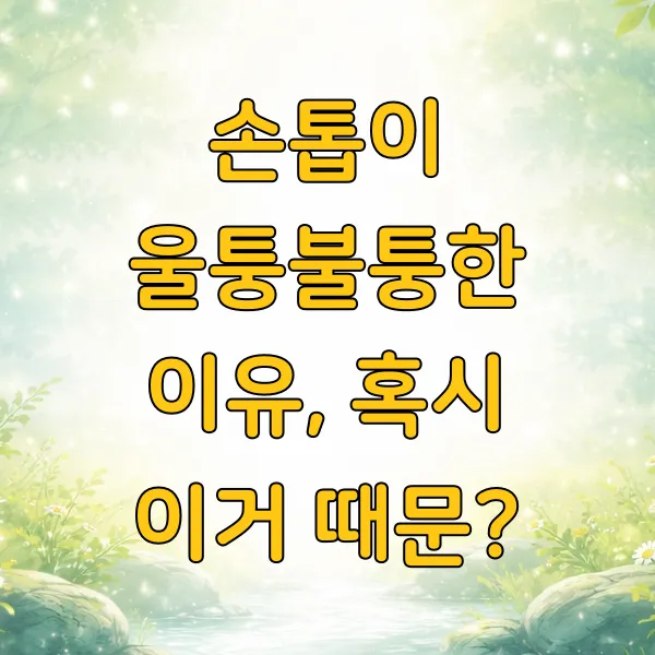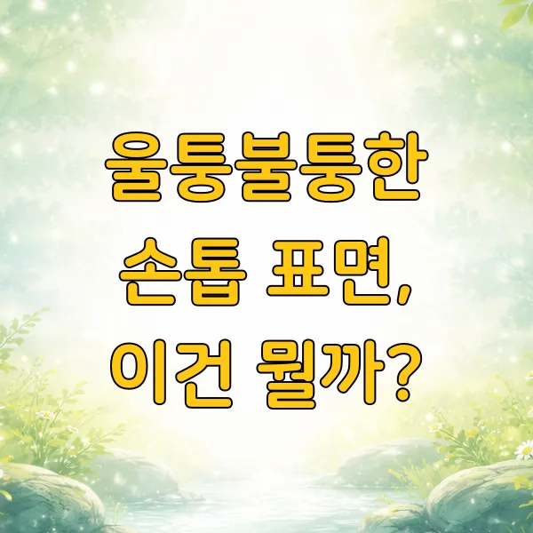 *** 손톱이 울퉁불퉁하다고 해서 너무 스트레스받지 않으셨으면 좋겠어요. 오늘 나눈 이야기들 참고해서 꾸준히 관리해주시면 분명 건강하고 예쁜 손톱을 유지하는 데 도움이 될 거라고 믿어요! 😊 *** **[면책 조항]** 본 게시물은 일반적인 건강 정보 제공을 목적으로 하며, 의학적인 진단이나 치료를 대체할 수 없습니다. 손톱 건강에 대한 구체적인 문제나 우려 사항이 있다면 반드시 전문가(의사, 약사 등)와 상담하시기 바랍니다.